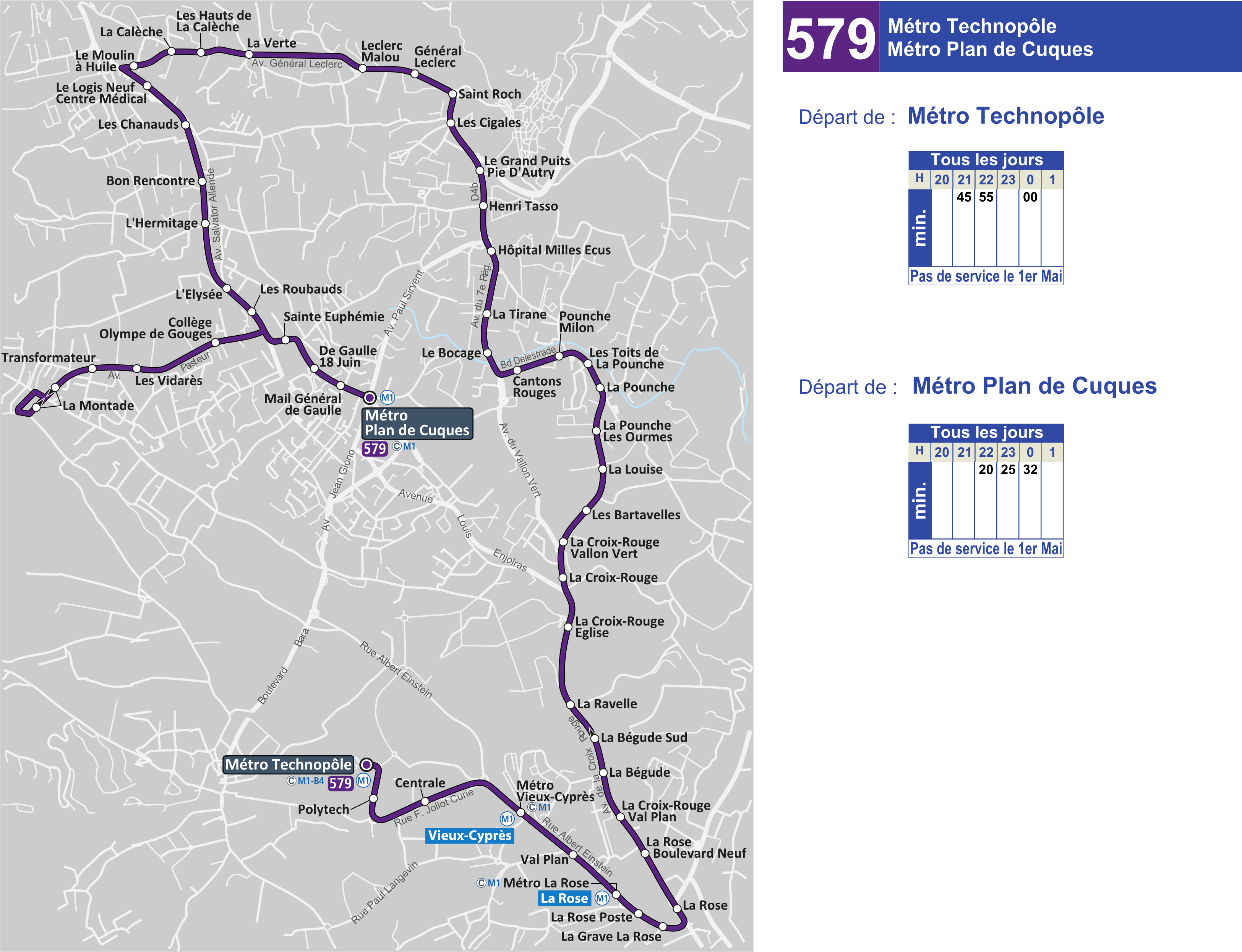| Ligne 579 Métro Technopôle ↔ Métro Plan de Cuques | |||||||||||